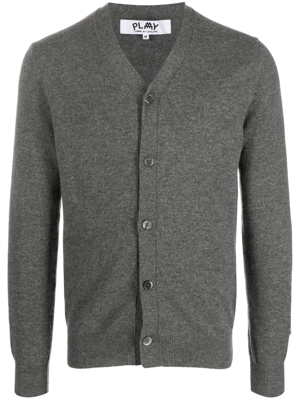 x the Artist Invader wool cardigan Comme des Garcons Play is famed for adding cheeky touches to everyday pieces. This cardigan is the perfect example. Designed in collaboration with the Artist Invader, it features an applique logo inspired by the classic Space Invaders game. Highlights - Medium grey - Wool - Fine knit - Applique logo - Ribbed trim - V-neck - Front button fastening - Long sleeves - Straight hem Imported Composition Wool 100% SIZE & FIT Model measurements Height 6 ft 2 in(1.87 m) Bust/Chest 38.18 in(97 cm) Hips 36.61 in(93 cm) Waist 29.13 in(74 cm) Measurement CHEST 36.22 in(92 cm) LENGTH 24.8 in(63 cm) SLEEVE LENGTH 24.8 in(63 cm) Shoulder Width 14.56 in(37 cm)