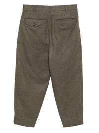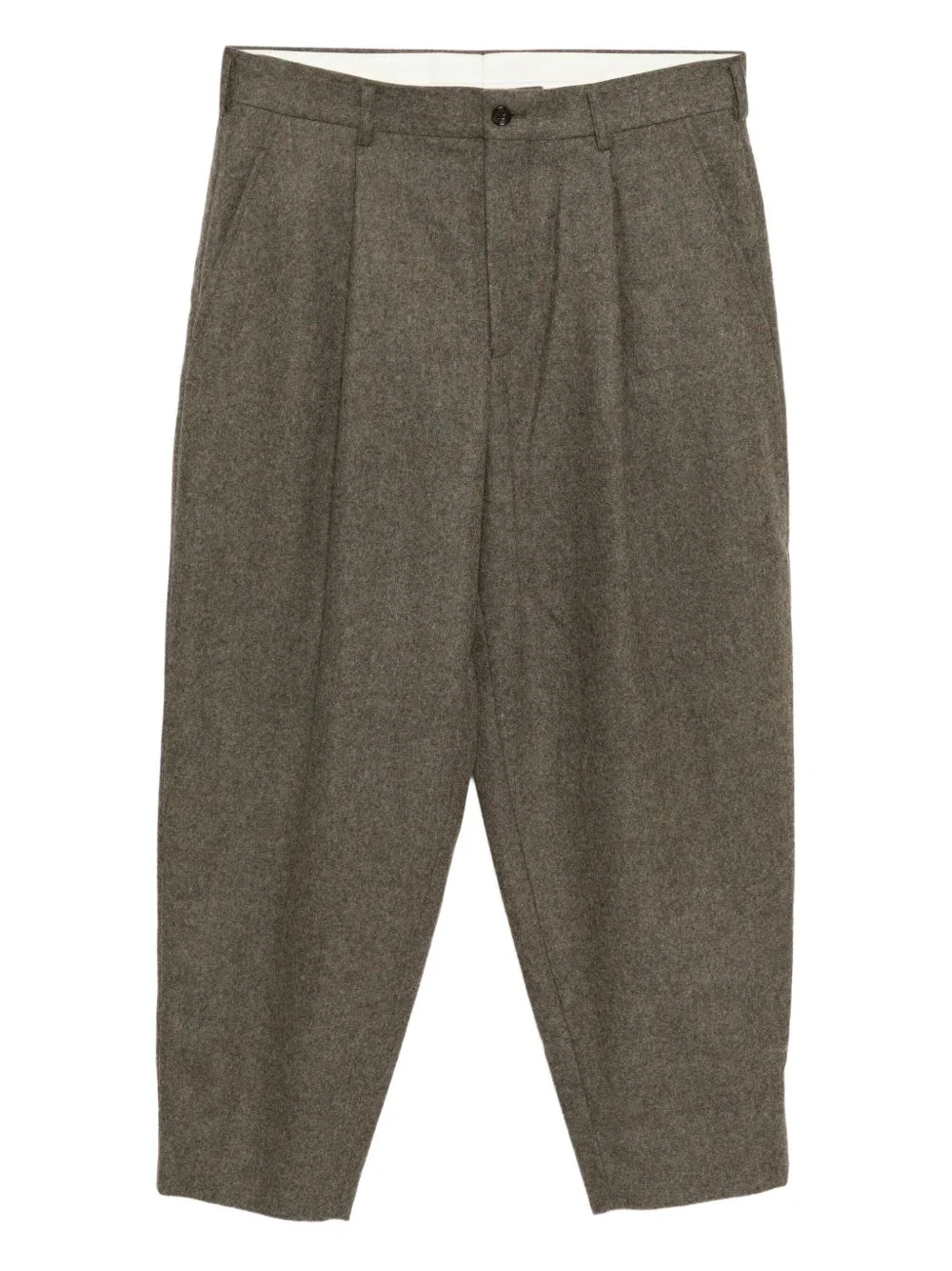 pleated tapered trousers Highlights - Olive green - Button fly fastening - Two side slash pockets - Rear flap pocket - Rear welt pocket Imported Composition Lining: Cupro 100% Outer: Wool 90%, Nylon 10% Washing instructions Dry Clean Only