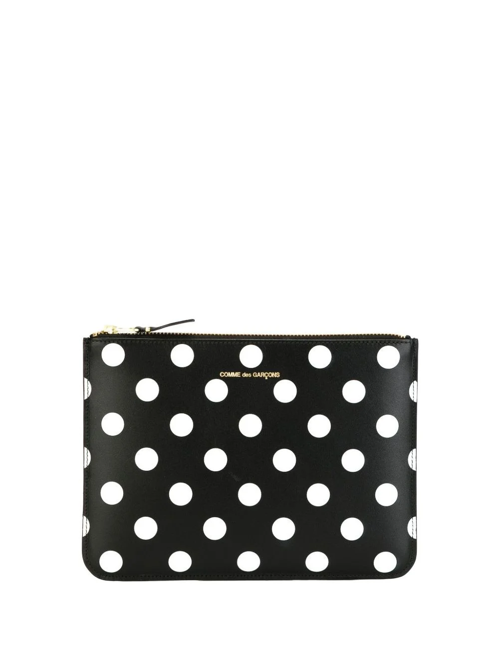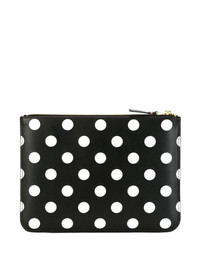 polka-dot clutch bag Highlights - Black and white - Leather - Top zip fastening - Logo print to the front - Main compartment Imported Composition Outer: Calf Leather 100% SIZE & FIT Measurement WIDTH 8.66 in(22 cm) HEIGHT 6.29 in(16 cm)