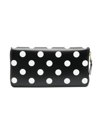 polka-dot continental wallet Highlights - Black/white - Calf leather - Polka dot print - All-around zip fastening - Main compartment - Internal card slots - Internal flap pocket - Gold-tone hardware Imported Composition Outer: Calf Leather 100% SIZE & FIT Measurement WIDTH 4.72 in(12 cm) LENGTH 7.48 in(19 cm) DEPTH 0.78 in(2 cm)