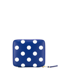 polka-dot leather wallet Highlights - Blue/white - Leather - Polka dot print - All-around zip fastening - Internal card slots - Internal note compartments - Internal flap pocket - Gold-tone hardware Imported Composition Outer: Calf Leather 100% SIZE & FIT Measurement DEPTH 0.78 in(2 cm) LENGTH 4.33 in(11 cm) WIDTH 3.93 in(10 cm)