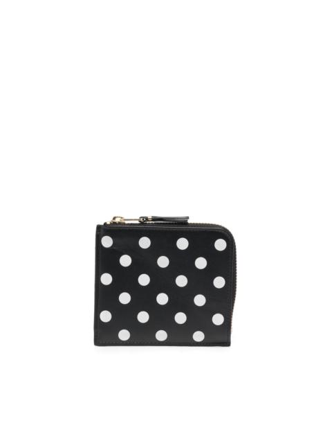 polka-dot zip-around wallet Highlights - Black/off-white - Calf leather - Polka dot print - All-around zip fastening - Main compartment - Internal card slots Imported Composition Outer: Calf Leather 100% SIZE & FIT Measurement LENGTH 4.33 in(11 cm) WIDTH 3.93 in(10 cm)