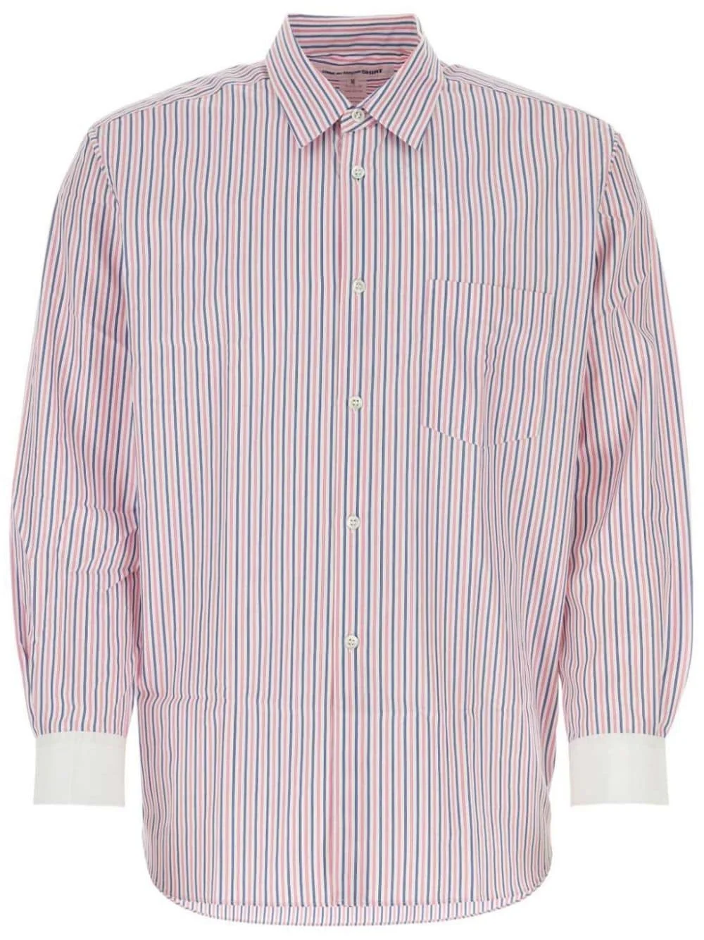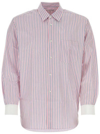 pinstripe-print shirt Highlights - Pink - Cotton - Poplin texture - Pinstripe print - Spread collar - Front button fastening - Long sleeves - Buttoned cuffs - Chest patch pocket - Rear curved hem Made in France Composition Cotton 100% Washing instructions Read Manufacturer Guidelines