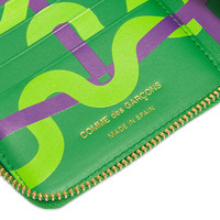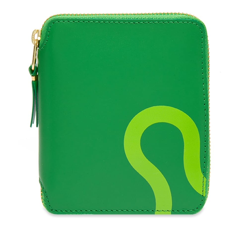 Comme des Garcons brings slithering style to the SA2100 wallet with an abstract snake design. In vibrant green, it features multiple card slots, note sleeve and a coin pocket, which opens to reveal the serpent’s head jewelled with ruby eyes. - Leather Construction - Zip Closure - Note Sleeve - 4 Card Slots - Coin Pocket - Made in Spain