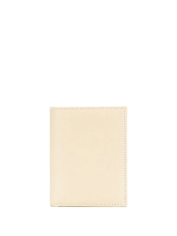 SA0641 Wallet in Off White from Comme des Garcons Wallet Highlights - cream white - flap design - internal gold logo print - internal cardholders - note compartment Made in Spain Designer ID: SA0641 Materials 100% Cowhide For surface stains, we recommend wiping with a damp cloth.