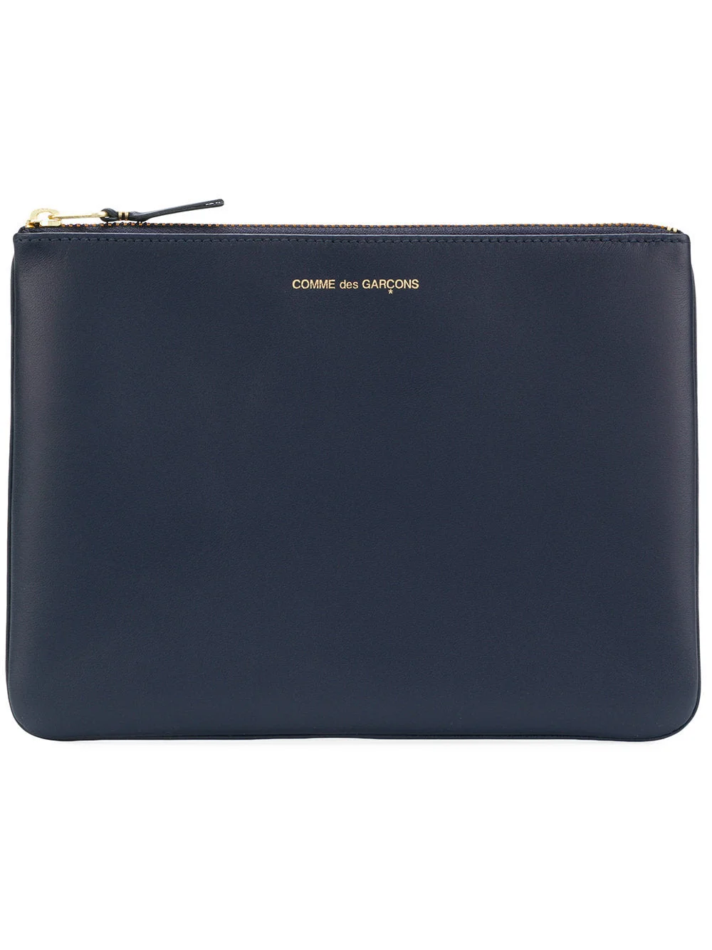 SA5100 Wallet in Navy from Comme des Garcons Wallet Highlights - navy - embossed logo stamp in the front - gold-tone top zip closure - clutch/wallet - one big compartment Measurements Length: 22 cm Width: 16 cm Thickness: 1.5 cm Made in Spain Designer ID: SA5100 Materials 100% Cowhide For surface stains, we recommend wiping with a damp cloth.