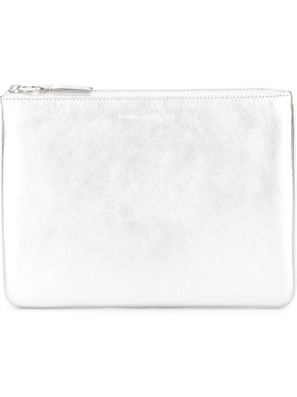 Silver-tone Leather Wallet from Comme Des Garcons. Highlights - silver exterior - unisex - one main compartment - top zip closure - 16 x 21.5 cm Composition: 100% Leather Please note that the metallic exterior is fragile and can disappear over time. Materials 100% Leather Please note that the metallic exterior is fragile and can disappear over time. For surface stains, we recommend wiping with a damp cloth.