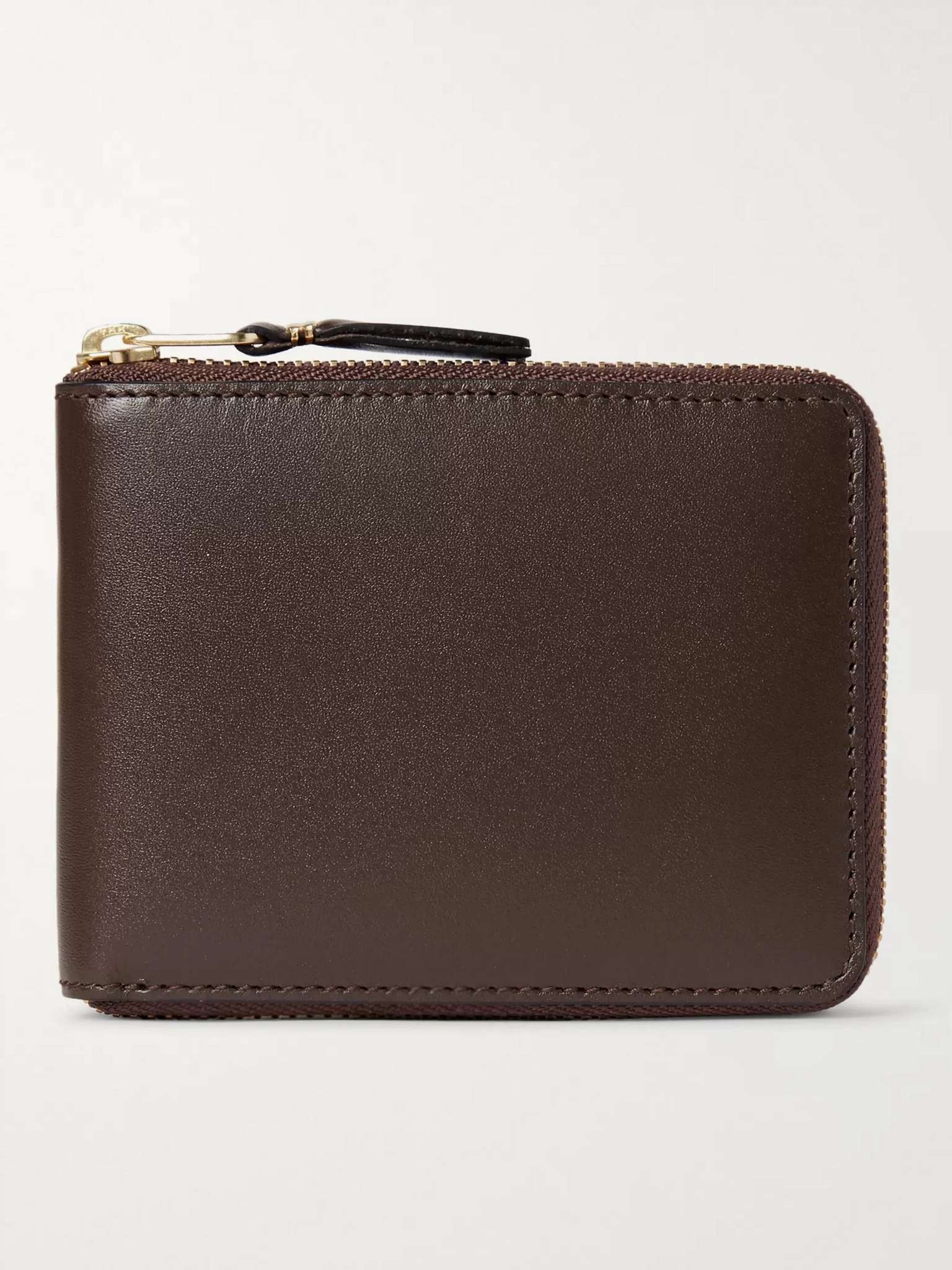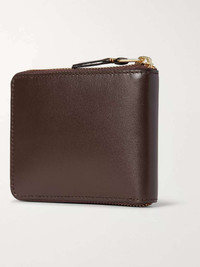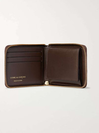 Comme des Garçons' compact leather wallet cleverly secures with a full zip to keep your essentials safe inside. The internal coin pocket furthers its versatility. Size & Fit - Height: 8.5cm / 3.3in - Width: 11cm / 4.3in Details & Care - Chocolate leather (cow) - Gold designer stamp, three card slots, snap-fastening coin pouch, bill sleeve - Zip fastening - Comes in a presentation box - Made in Spain