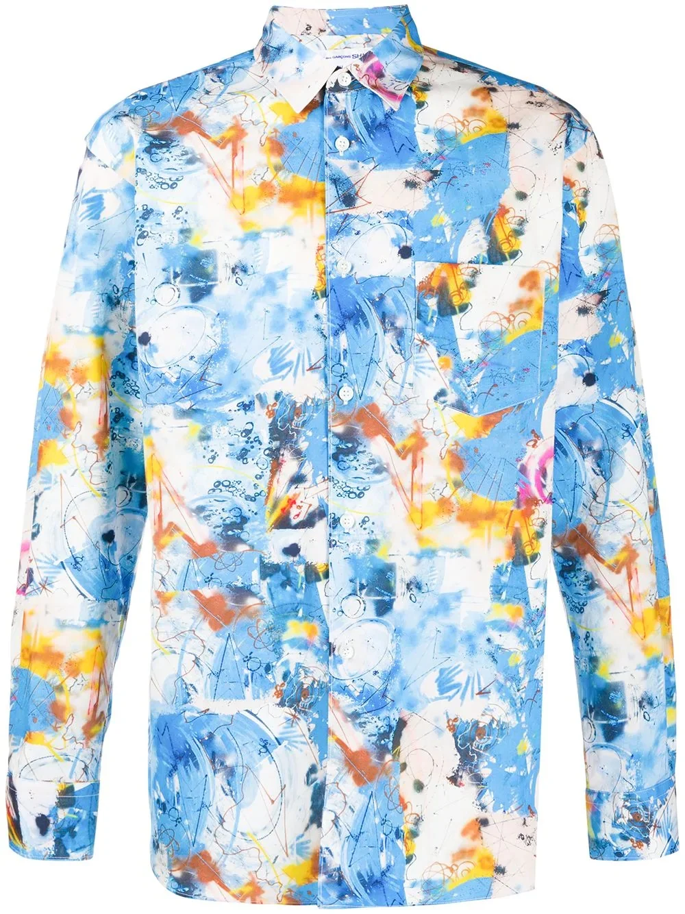 all-over print shirt Highlights - Multicolour - Cotton - Tie-dye print - Classic collar - Front button fastening - Long sleeves - Straight hem Made in France Composition Cotton 100% SIZE & FIT Model measurements Height 6 ft 2 in(1.89 m) Bust/Chest 35.43 in(90 cm) Hips 36.61 in(93 cm) Waist 28.74 in(73 cm) FittingInformation This piece fits true to size. We recommend you get your regular size Cut for a loose fit Made with a mid-weight non-stretch fabric Washing instructions Machine Wash