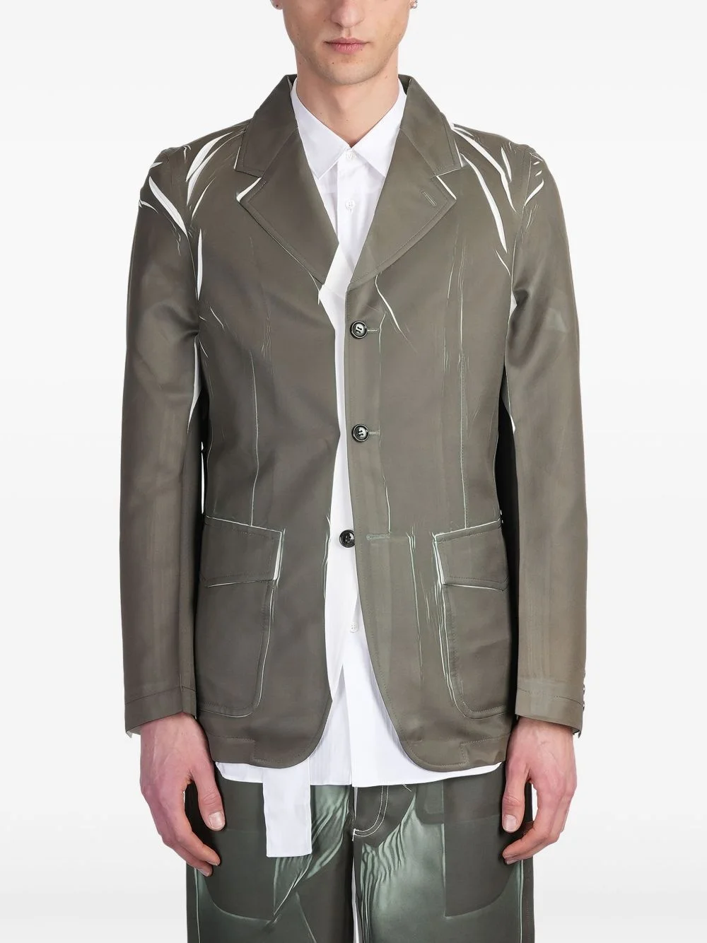 contrasting-detailed blazer Highlights - Desert sage green - Front button fastening - Two side flap pockets - Notched lapels - Long sleeves Imported Composition Polyester 100%