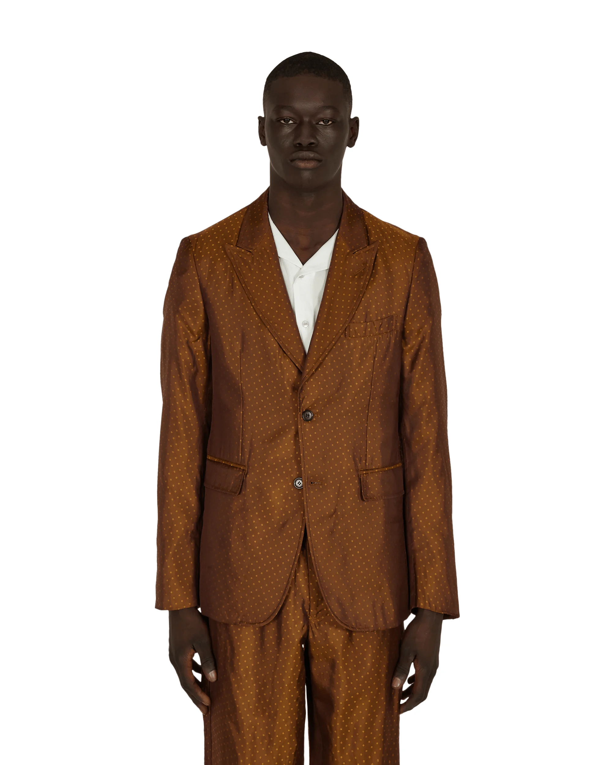 Comme Des Garçons Shirt Woven Khaki Coats and Jackets Blazers - 100% Cupro - All-Over Dot Pattern - Notched Lapel Collar - Chest Pocket - Button Closure - Two Flap Pockets at Waist - Button Cuffs - Style Code: FG-J004-SS21 3 SIZE & FIT Model is 6ft 1in/1.85m with 34"/86cm chest and wears size M. Measures (Size M): 43cm Shoulders, 50cm Chest, 68cm Sleeve, 74cm Length, 52cm Hem.