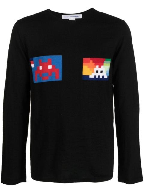 graphic crewneck knitwear Highlights - Blue - Graphic pattern - Crew neck - Long sleeves - Ribbed cuffs - Ribbed hem Imported Composition Wool 100% Washing instructions Read Manufacturer Guidelines