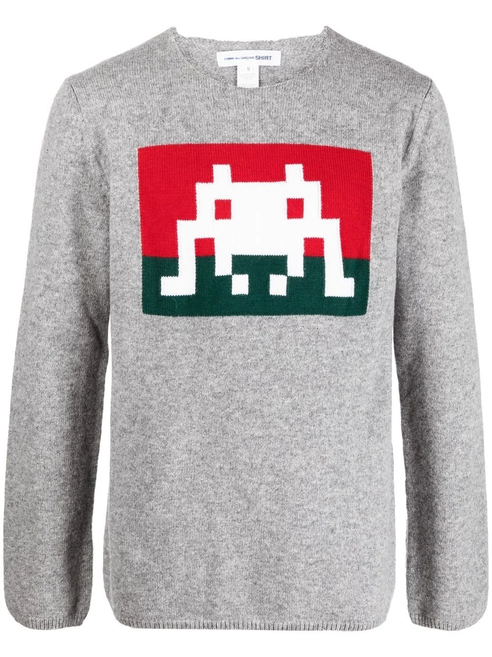 graphic-print jumper grey/multicolour wool blend ribbed detailing graphic print to the front round neck long sleeves straight hem Imported Composition Wool 92%, Acrylic 8% SIZE & FIT Model measurements Height 6 ft 2 in(1.87 m) Bust/Chest 35.82 in(91 cm) Hips 35.43 in(90 cm) Waist 27.95 in(71 cm) FittingInformation This piece fits true to size. We recommend you get your regular size Cut for a relaxed fit Made with a mid-weight fabric Washing instructions Dry Clean Only