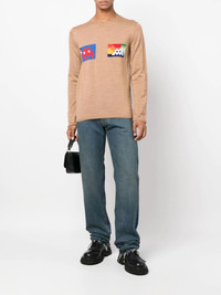 graphic-print round-neck jumper sand beige wool blend graphic print to the front round neck long sleeves straight hem Imported Composition Wool 90%, Acrylic 10% SIZE & FIT Model measurements Height 6 ft 2 in(1.87 m) Bust/Chest 38.18 in(97 cm) Hips 36.61 in(93 cm) Waist 29.13 in(74 cm) FittingInformation This piece fits true to size. We recommend you get your regular size Cut for a relaxed fit Made with a mid-weight fabric Washing instructions Dry Clean Only