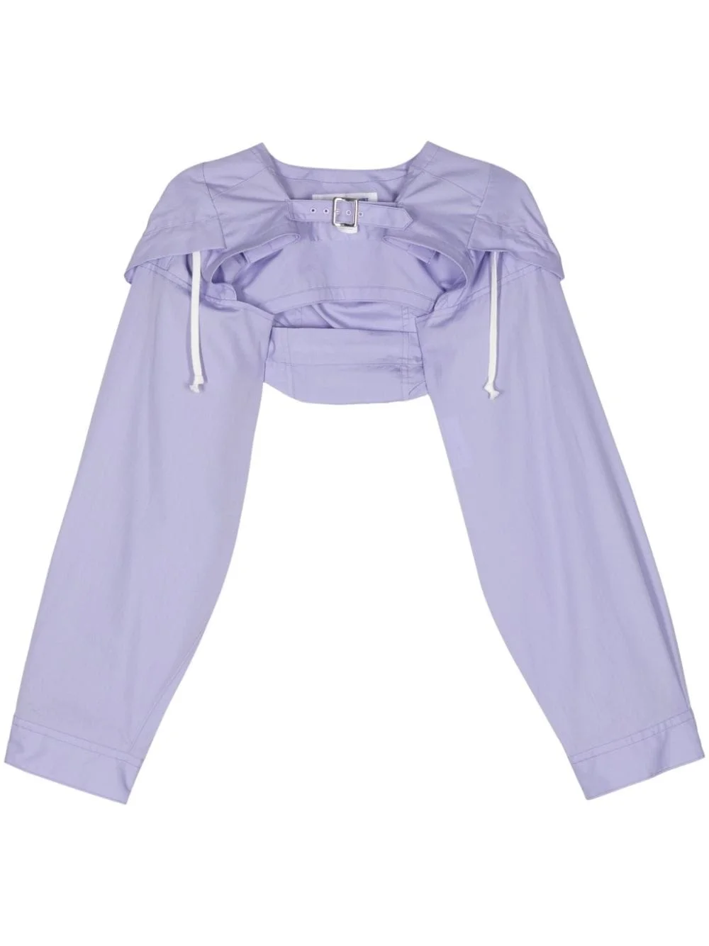 hooded cropped cotton jacket Highlights - Lilac purple - Cotton - Tonal stitching - Drawstring hood - Round neck - Front buckle fastening - Long sleeves - Buttoned cuffs - Cropped Imported Composition Cotton 100%