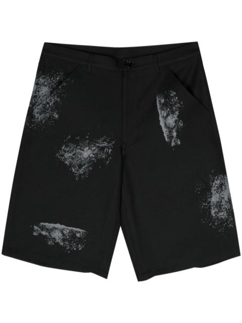 paint splatter-detail shorts Highlights - Navy blue - Twill weave - Paint splatter detail - Tonal stitching - Belt loops - Two side inset pockets - Two rear patch pockets - Concealed fly and button fastening Imported Composition Polyester 100%