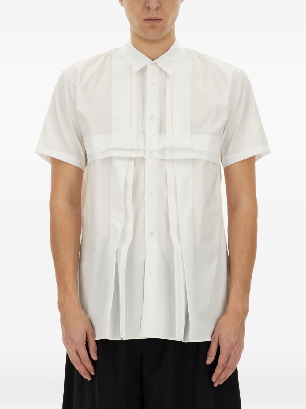 pleated-panel cotton shirt Highlights - White - Short sleeves - Pleated front-panel - Button fastening - Point collar Made in France Composition Cotton 100%