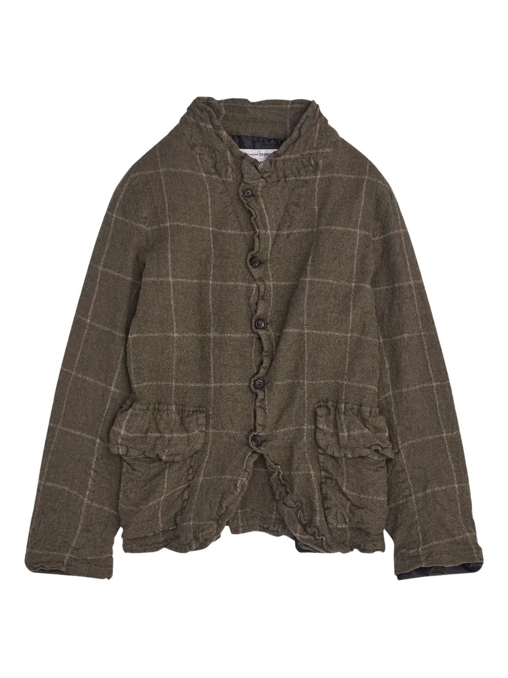 ruffled check jacket Highlights - Khaki - Check pattern - Ruffled trim - Button fastening - Front pockets - High neck Imported Composition Wool 100% Washing instructions Read Manufacturer Guidelines