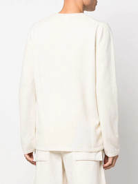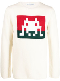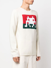graphic-print jumper off-white wool blend ribbed detailing graphic print to the front round neck long sleeves straight hem Imported Composition Wool 92%, Acrylic 8% SIZE & FIT Model measurements Height 6 ft 1 in(1.85 m) Bust/Chest 35.82 in(91 cm) Hips 37.79 in(96 cm) Waist 29.13 in(74 cm) FittingInformation This piece fits true to size. We recommend you get your regular size Cut for a relaxed fit Made with a mid-weight fabric Washing instructions Dry Clean Only