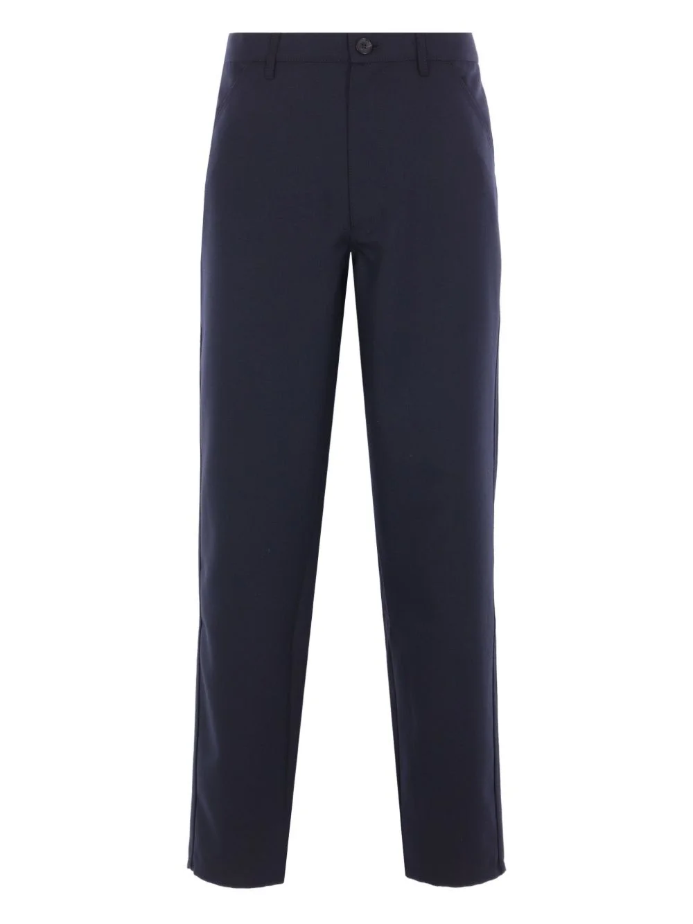 straight-leg trousers Highlights - Navy blue - Button-zip closure - Belt loops - Side slash pockets - Rear patch pockets Made in France Composition Polyester 55%, Wool 45% Washing instructions Read Manufacturer Guidelines