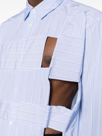 striped cut-out cotton shirt Highlights - Light blue/optical white - Cotton - Panelled design - Multi-way stripe pattern - Cut-out detailing - Classic collar - Front button fastening - Long sleeves - Buttoned cuffs - Curved hem Made in France Composition Cotton 100% SIZE & FIT Model measurements Height 6 ft 0 in(1.84 m) Bust/Chest 36.22 in(92 cm) Hips 35.43 in(90 cm) Waist 26.77 in(68 cm) Measurement CHEST 48.03 in(122 cm) SLEEVE LENGTH 24.4 in(62 cm) LENGTH 31.88 in(81 cm) WAIST 44.88 in(114 cm) Shoulder Width 19.68 in(50 cm) FittingInformation Designed for a regular fit, allowing for a comfortably loose fit throughout the body Made from a lightweight non-stretch fabric This piece fits true to size – take your usual size