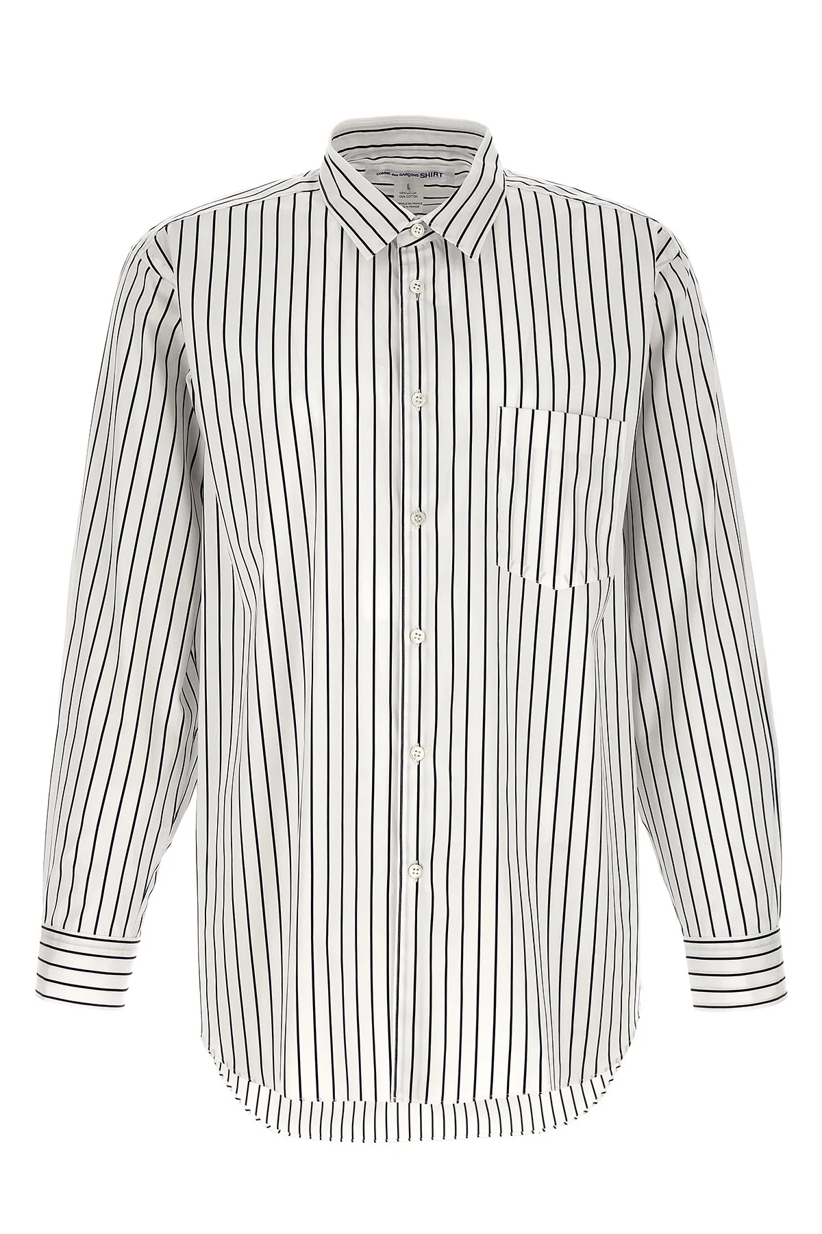 cod. FZB115PER119 Striped cotton poplin shirt, front patch pocket, button closure, long cuffed sleeves. Color: White/Black Size & Fit: True to size fit Composition: 100% cotton Made in: France