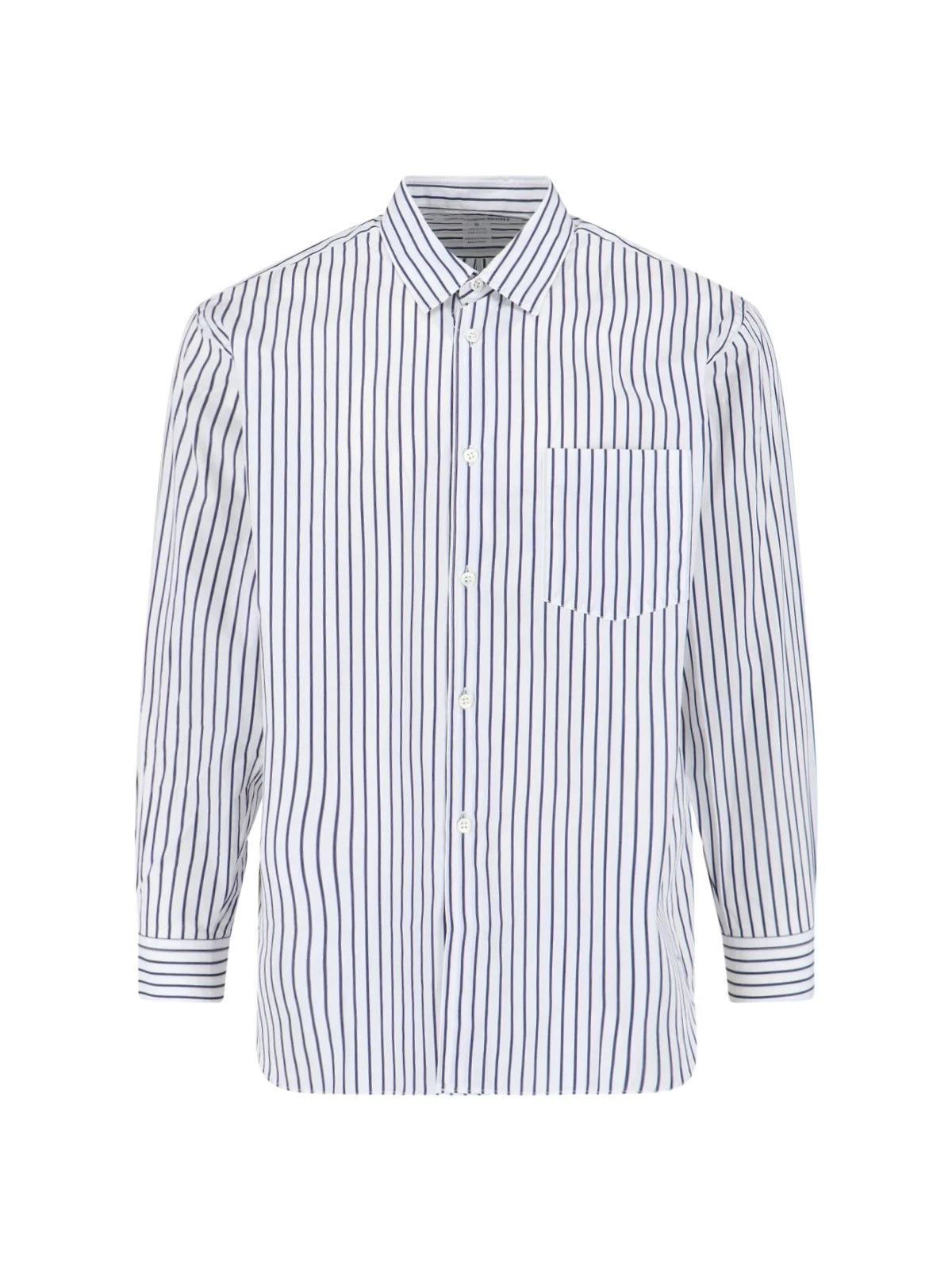 COMME DES GARCONS SHIRT IN WHITE COTTON WITH BLUE STRIPED PATTERN, CLASSIC COLLAR, BUTTON CLOSURE, FRONT POCKET, BUTTON CUFFS, STRAIGHT HEM. PRODUCT INFO PRODUCT CODE FZ B115 PER119 COMPOSITION: 100% COTTON SIZE AND FIT: REGULAR FIT MADE IN: FRANCE