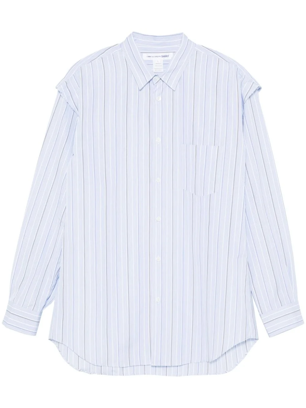 striped shirt Highlights - Blue/white - Cotton - Poplin texture - Front button fastening - Vertical stripe pattern - Classic collar - Ruffled detailing - Long sleeves - Buttoned cuffs - Chest patch pocket - Box-pleat detail - Curved hem Made in France Composition Cotton 100% SIZE & FIT Model measurements Height 6 ft 2 in(1.89 m) Bust/Chest 39.76 in(101 cm) Hips 37.4 in(95 cm) Waist 29.92 in(76 cm) FittingInformation Designed for a regular fit, allowing for a comfortably loose fit throughout the body Made from a midweight non-stretch fabric
