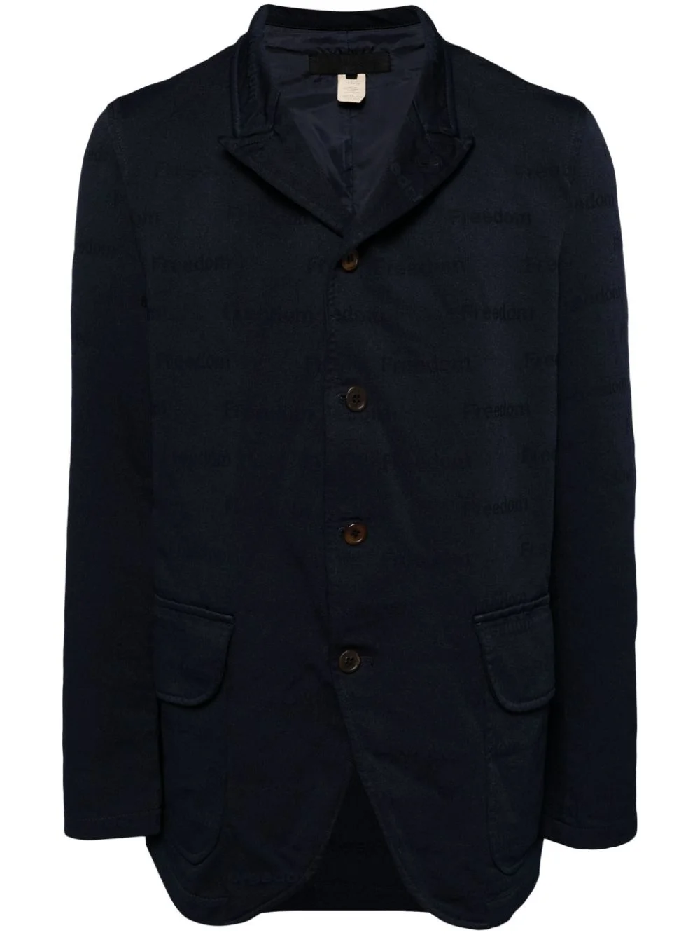 strong will printed jacket Highlights - Navy blue - All-over strong will print - Button fastening - Front flap pocket - Buttoned cuffs - Notched lapels - American rear vent - Long sleeves - Straight hem - Full lining Imported Composition Polyester 100% Washing instructions Machine Wash