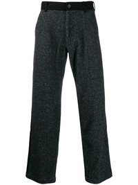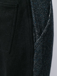 contrasting wide-leg trousers Black and navy wool contrasting wide-leg trousers from Comme Des Garcons Shirt featuring a waistband with belt loops, a button and zip fly, front pockets, back pockets and a herringbone pattern. Made in France Composition Wool 100% SIZE & FIT Model measurements Height 6 ft 1 in(1.86 m) Bust/Chest 37.4 in(95 cm) Hips 37 in(94 cm) Waist 30.7 in(78 cm) FittingInformation This piece fits large – you might want to get one size down Regular fit Made with a mid-weight non-stretch fabric Washing instructions Dry Clean Only