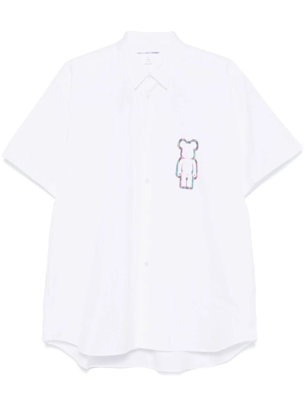 x Be@rbrick cotton shirt Highlights - White - Front button fastening - Classic collar - Short sleeves - Curved hem Made in France Composition Cotton 100% SIZE & FIT Model measurements Height 6 ft 1 in(1.85 m) Bust/Chest 35.82 in(91 cm) Hips 37.79 in(96 cm) Waist 29.13 in(74 cm) FittingInformation Designed to be unstructured, offering a loose fit throughout Made from a midweight non-stretch fabric