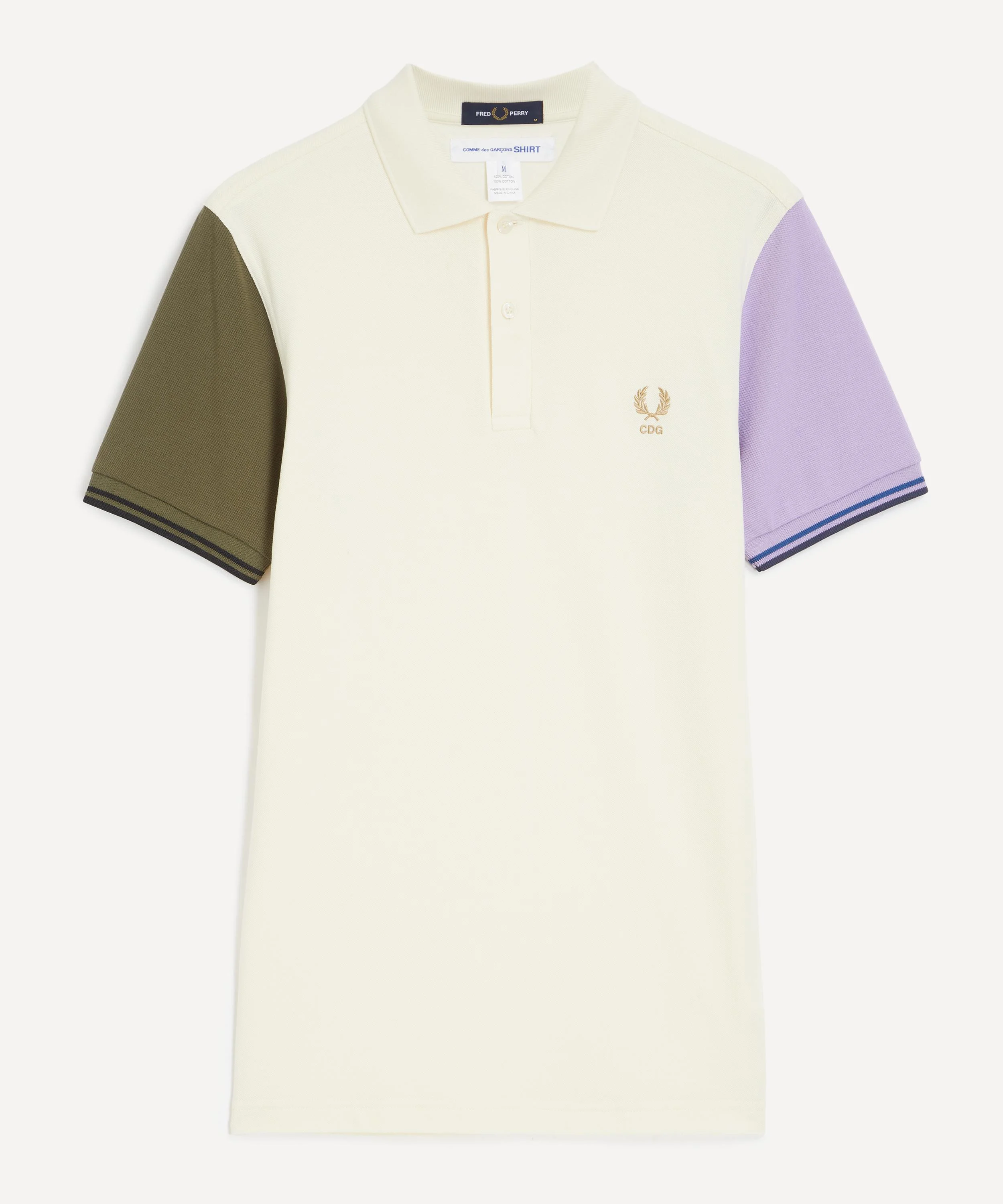 DETAILS M3600 polo shirt Comme des Garcons SHIRT x Fred Perry collaboration Regular fit Mixed blocked short sleeves Flat-knit collar Partial placket Twin tipping at collar and cuffs Laurel Wreath and CDG embroidery SIZE & FIT Model is 187.5cm/6'2"; Chest: 87cm; Waist: 79cm and wears a size M COMPOSITION & CARE 100% Cotton Machine wash