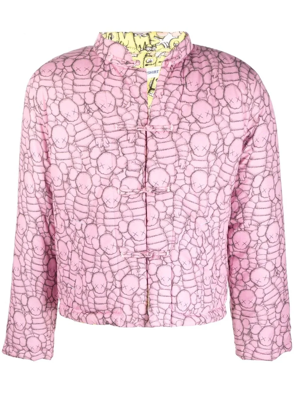 x KAWS reversible padded jacket pink cotton reversible padded design all-over graphic print all-over logo print stand-up collar front button fastening long sleeves Made in France Composition Outer: Cotton 100% Lining: Polyester 100% SIZE & FIT Model measurements Height 6 ft 1 in(1.86 m) Bust/Chest 35.43 in(90 cm) Hips 35.43 in(90 cm) Waist 29.92 in(76 cm) Measurement CHEST 44.09 in(112 cm) WAIST 44.09 in(112 cm) SLEEVE LENGTH 34.64 in(88 cm) Shoulder Width 18.11 in(46 cm) Washing instructions Dry Clean Only