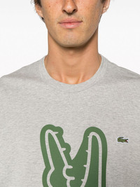 x Lacoste cotton T-shirt Highlights - Light grey/dark green - Cotton - Jersey texture - Logo print to the front - Logo patch at the chest - Crew neck - Drop shoulder - Short sleeves - Straight hem Imported Composition Cotton 100% SIZE & FIT Model measurements Height 6 ft 2 in(1.89 m) Bust/Chest 37.79 in(96 cm) Hips 37 in(94 cm) Waist 29.92 in(76 cm) FittingInformation Designed for a relaxed fit, this piece allows for comfort and movement when worn Made from a midweight non-stretch fabric, this piece offers minimal elasticity when worn This piece fits true to size – take your usual size Washing instructions Machine Wash