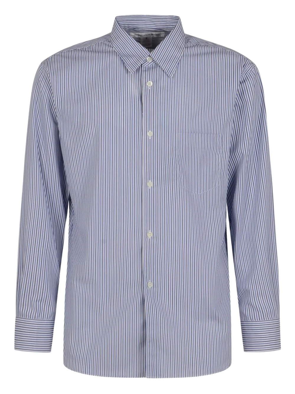 striped cotton shirt Highlights - Light blue - Vertical stripe pattern - Long sleeves - Button fastening - Point collar - Chest pocket Made in France Composition Cotton 100% Washing instructions Read Manufacturer Guidelines