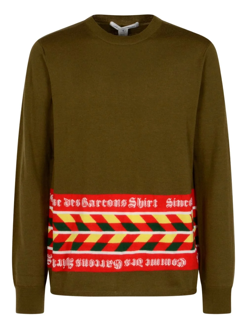 striped-panel sweater Highlights - Brown - Crew neck - Patterned panel - Long sleeves - Ribbed cuffs - Ribbed hem Imported Composition Acrylic 57%, Wool 23%, Nylon 20% Washing instructions Read Manufacturer Guidelines