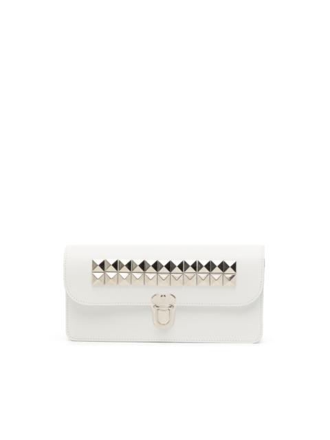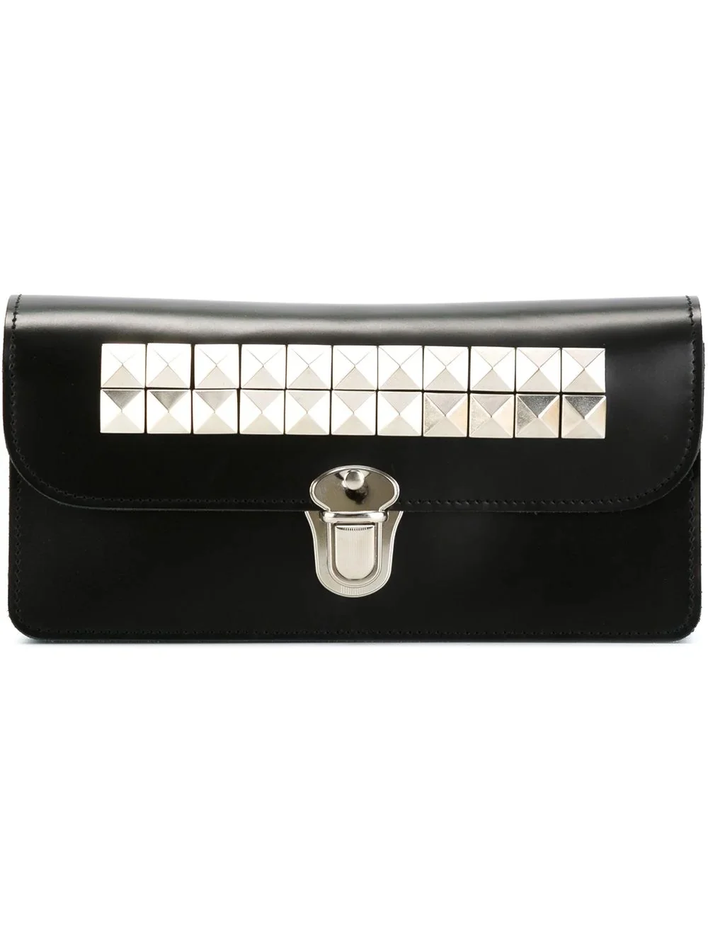 studded leather wallet Highlights - Black calf leather 'studs' wallet from comme des garcons wallet featuring a foldover top with push-lock closure, silver-tone stud detailing, an internal zipped pocket, multiple interior compartments and an embossed internal logo stamp. Imported Composition Outer: Calf Leather 100% SIZE & FIT Measurement WIDTH 8.26 in(21 cm) LENGTH 3.93 in(10 cm)
