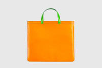 - SA9000SFBLU - Blue/Orange - 100% Cowhide Leather - Two handle tote - Two-tone panelling - Gold foil branding - Interior zipper pocket - Cotton lining - H33cm x W36cm