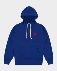 Comme des Garcons "Play" sweatshirt with signature heart graphic at chest. Hooded drawstring neckline. Kangaroo pocket. Banded cuffs and hem. Pullover style. Polyester. Imported.