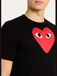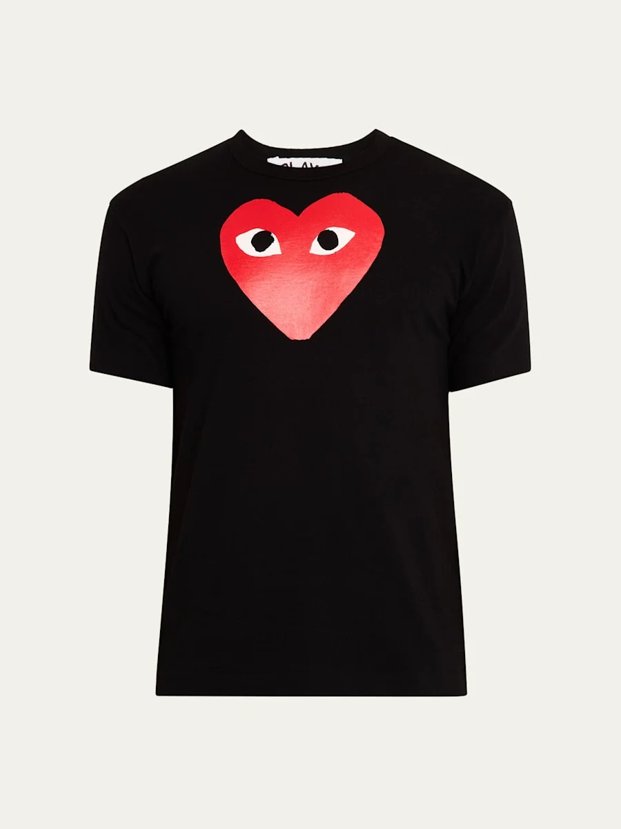 Comme des Garcons T-shirt featuring big heart graphic. Crew neckline. Short sleeves. Straight hem. Pullover style. Cotton. Imported. Model is 6'1"/185cm. Online Inquiries: BGS21_N7B33| Store Inquiries: #2303045
