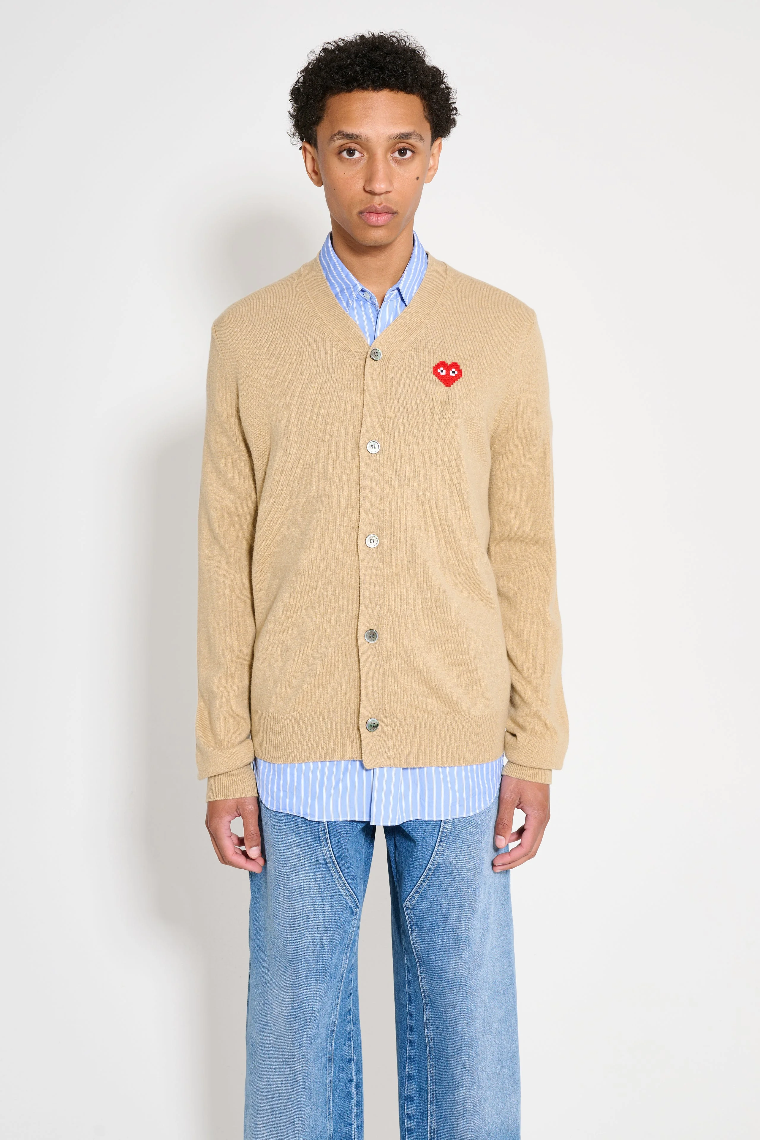 COMME DES GARÇONS PLAY X INVADER CARDIGAN LIGHT CAMEL