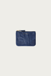 Soft, washed cowhide leather gives this slim zip pouch a relaxed feel with a lived in texture. Simple, functional, and perfect for daily carry. The gold foil logo and hardware add a clean contrast to the matte finish. Sized for cards, cash, and small essentials without bulk. - One compartment - Zip closure - Gold foil embossed logo - 145mm x 105mm - 100% Calf leather - Made in Spain - Navy