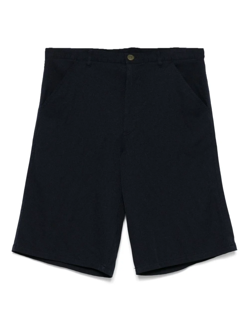 woven shorts Highlights - Navy blue - Concealed fly and button fastening - Two side slash pockets - Two rear patch pockets Imported Composition Polyester 100%