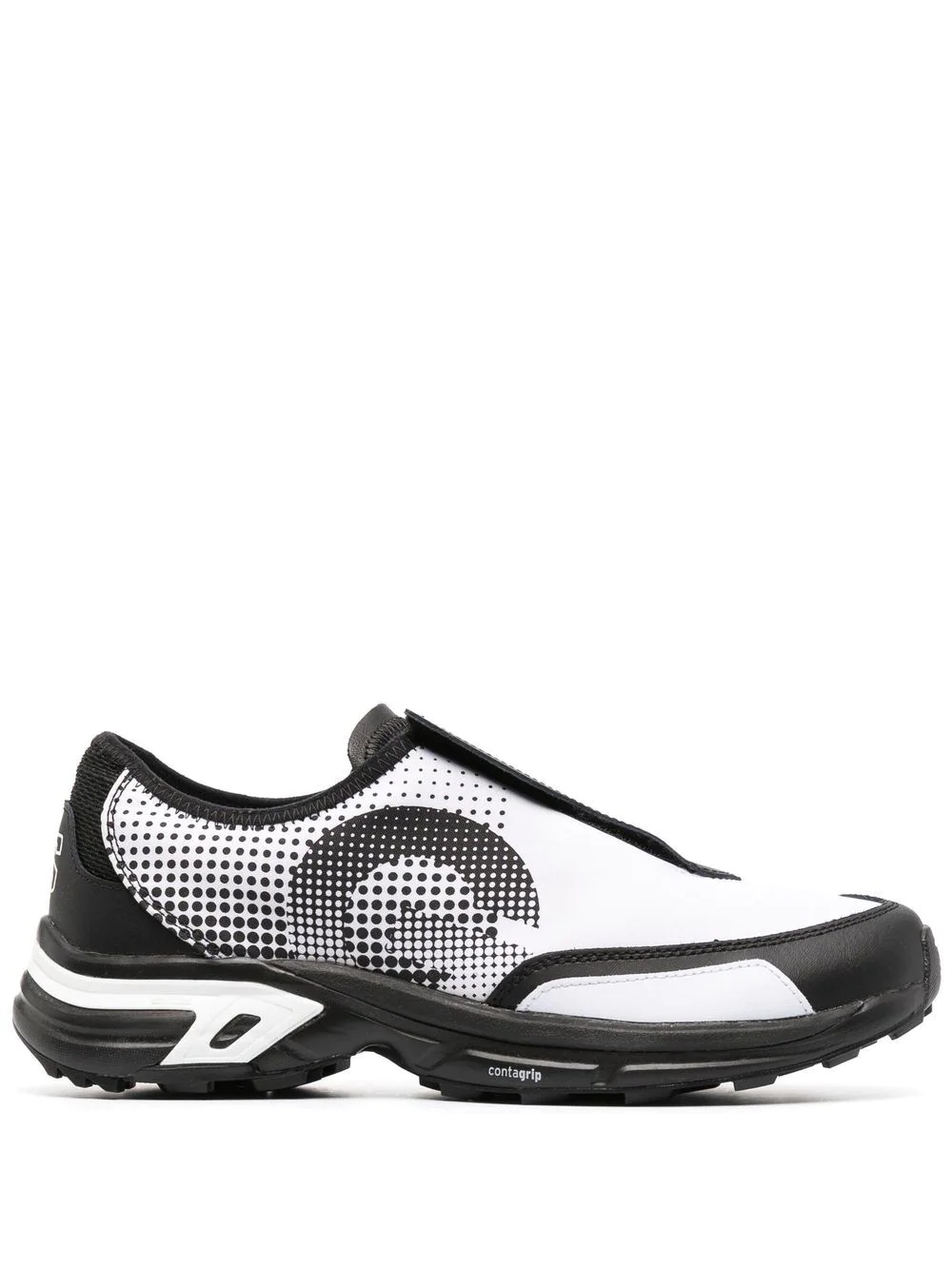 x Salomon logo-print low-top sneakers x Salomon logo-print low-top sneakers from COMME DES GARÇONS featuring black/white, calf leather, polka dot print, logo print to the side, logo-print tongue, round toe and rubber sole. Imported Composition Sole: Rubber 100% Lining: Fabric 100%, Polyurethane 100% Outer: Polyester 100% SIZE & FIT Measurement HEEL 1.2 in(3 cm) Sole height 0.8 in(2 cm)