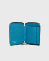 This classic wallet from Comme des Garçons is made in Spain from high-quality cowhide and features a gold-colored zipper and gold foil logo. - Zip closure Four card slots - Coin pocket - Compartment for banknotes - Dimensions: 12.5cm x 10.5cm Article Number: SA2100-BLUE Gender: Men, Women Color: BLUE Material: 100% Leather