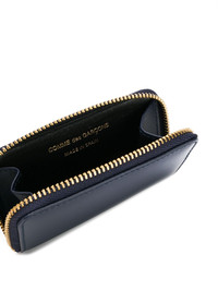 zipped wallet Comme des Garcons creative director and founder, Rei Kawakubo, has dramatically changed the way we look at fashion ever since her Paris debut in 1981 with the revolutionary collection entitled ‘Lace’. The Japanese designer challenges perceptions in both mens and womenswear with her radical and often surprising use of unusual references, exaggerated proportion, and individual execution, all presented in her much-anticipated theatrical shows. This blue leather zipped wallet features a gold-tone top zip fastening and an internal logo stamp. Imported Composition Outer: Calf Leather 100% SIZE & FIT Measurement DEPTH 0.59 in(1.5 cm) LENGTH 4.52 in(11.5 cm) WIDTH 2.36 in(6 cm)