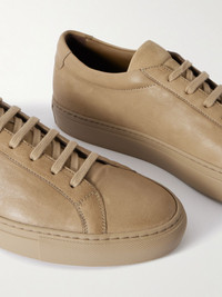 Common Projects 'Achillies' sneakers remain just as fresh two decades after their debut. Staying true to the original, this 'Premium' pair has been made in Italy from leather and stamped with the label's gold foil serial number at the heel counters. Large to size. See Size & Fit notes. Size & Fit - Fits large to size. Take a half/ full size smaller than normal - Only available in full sizes, go down to the nearest whole size if you take a half size - European sizing Details & Care - Taupe leather - Lace-up - Style number: 25060240
