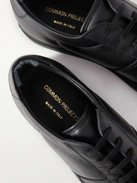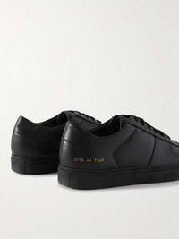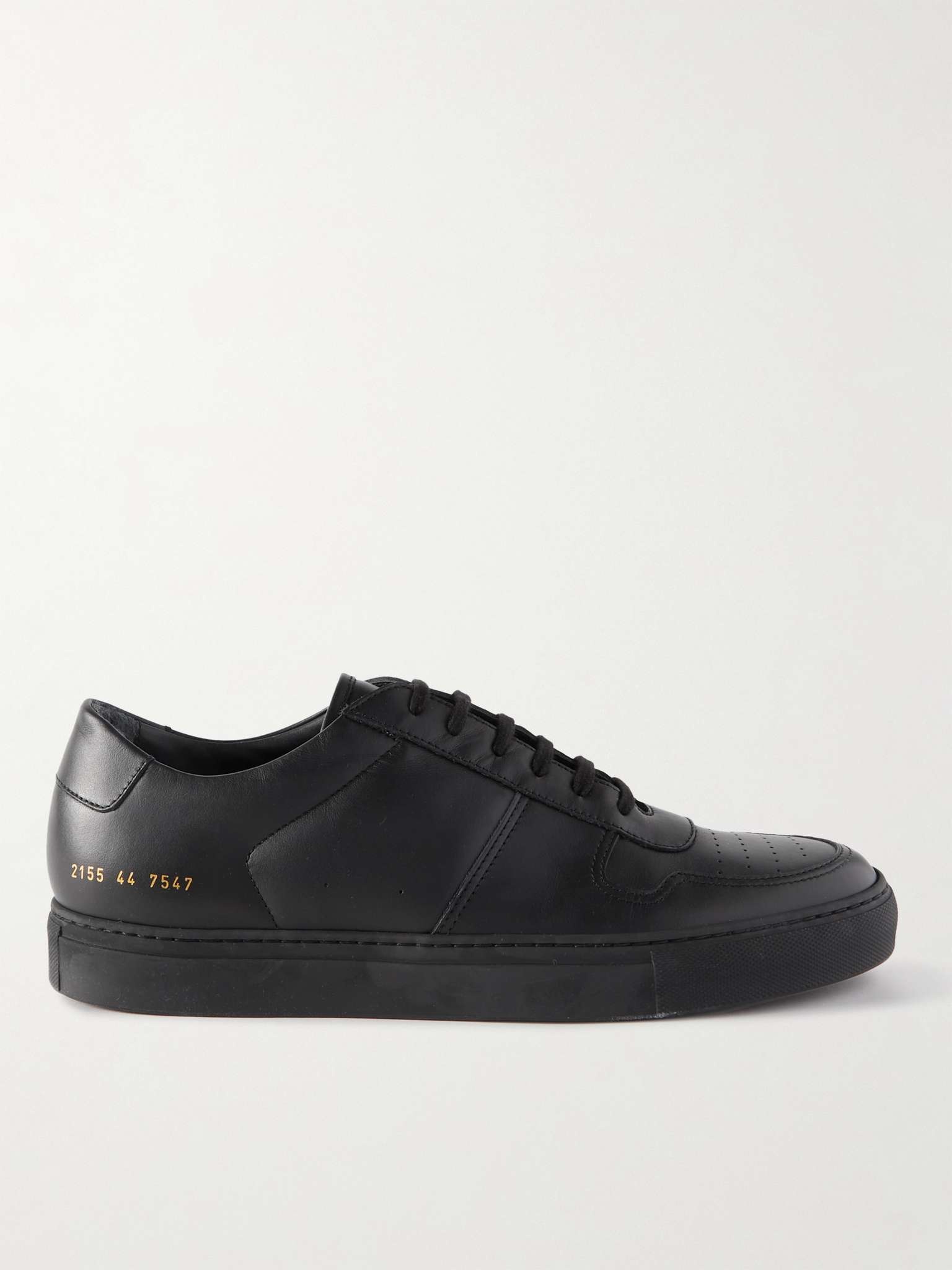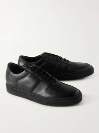 Crafted in Italy from smooth and textured-leather panels, Common Projects' 'BBall' sneakers are the epitome of casual luxury. This pair has a perforated toe box for breathability and the house's signature golden serial number stamp - part of the label's minimal branding that's made its footwear so iconic. For a streamlined look wear them with black jeans. Shown here with a [Paul Smith T-shirt id594064], [rag & bone Sweatshirt id820029], [A.P.C. Jacket id779272], [Acne Studios Jeans id670758]. [Alexander Wang backpack id588668]. This item is large to size; see Size & Fit notes. Size & Fit - Fits large to size. Take one size smaller than normal - Narrow at the toe - European sizing Details & Care - Black smooth and textured-leather - Gold stamped serial numbers, perforated toe boxes, leather linings, rubber soles - Come with dust bag and spare laces - Made in Italy