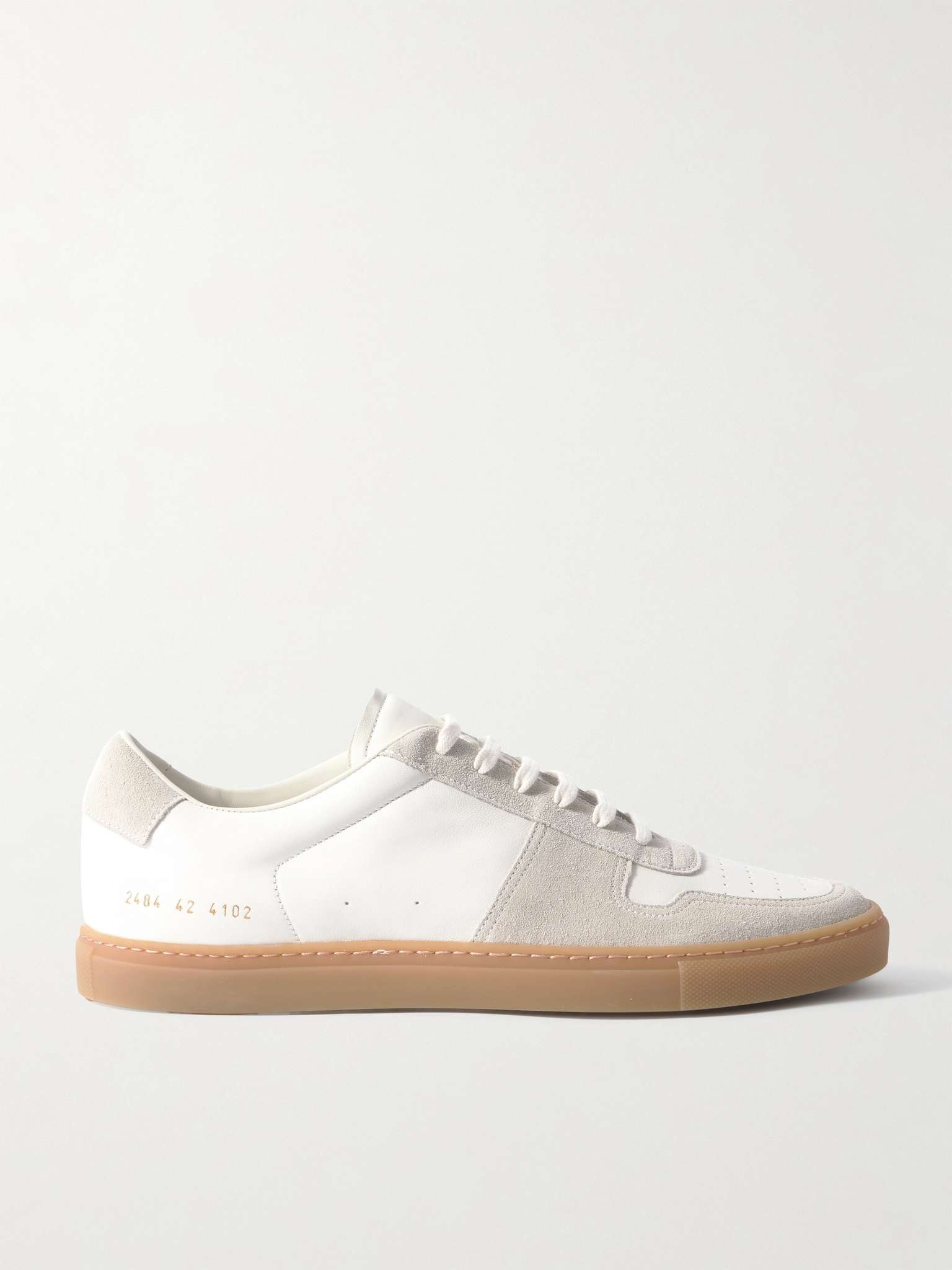 If you're a fan of court styles, you'll recognise hallmarks of basketball classics in Common Projects' aptly named 'BBall' sneakers. This pair is made from panels of leather and suede and set on vulcanised rubber soles. The toes are perforated for optimal breathability. Size & Fit - Fits true to size. Take your normal size - Only available in full sizes, go up to the nearest whole size if you take a half size - European sizing Details & Care - White leather, light-grey suede (Calf, Lamb) - Lace-up - Style number: 24844102