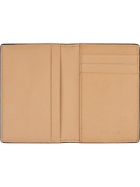 Buffed calfskin bifold wallet. · Logo stamp at back face · Four card slots · Two patch pockets · Buffed leather interior · Plain-woven lining · H4.5" x W3" Supplier color: Black 100% calfskin. Made in Italy 252133M164010